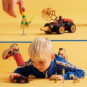 - Inclui uma minifigura de Miles “Spin” Morales e uma minifigura Electro, além de um grande bloco inicial para tornar a construção rápida e divertida - São 58 peças, recomendado para fãs de Lego a partir de 4 anos de idade. - O veículo mede mais de 8 cm de altura, 12 cm de comprimento e 13 cm de largura.