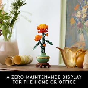 Tire um tempo com o conjunto de construção de decoração de flores de crisântemo LEGO® Icons para adultos (10368). O crisântemo é um motivo popular na arte tradicional e representa o outono como parte do quarteto clássico de belas plantas conhecido como os Quatro Cavalheiros. Entregue-se a um projeto de construção consciente ou presenteie um ente querido com esta exibição floral atemporal - uma ideia de presente perfeita para qualquer ocasião. Esta réplica detalhada, com folhas e pétalas articuláveis, captura a flor laranja vívida em botão, florescendo e em plena floração e vem com um vaso de flores verde pastel decorado com uma faixa dourada e colocado em um pedestal com efeito de madeira. Fácil de montar, o modelo de planta crisântemo é uma elegante peça central para qualquer espaço e pode ser exibido junto com outros conjuntos da LEGO Botanical Collection (vendidos separadamente). Descubra um espaço para relaxamento com a ampla variedade inspiradora de projetos de construção criativa LEGO projetados para adultos. Uma versão digital das instruções de construção está disponível no aplicativo LEGO Builder. Decoração de flores de crisântemo montável – Tire um tempo de qualidade ou junte-se a amigos e familiares para um projeto consciente com o conjunto de construção LEGO® Icons Chrysanthemum para adultos O que vem na caixa – Este conjunto de construção criativo inclui tudo o que você precisa para criar uma planta de crisântemo e um vaso de flores verde pastel com uma faixa dourada e um pedestal com efeito de madeira Botões florescendo – O LEGO® Icons Chrysanthemum com folhas e pétalas articuláveis, captura a flor laranja vívida em vários estágios, incluindo 1 em plena floração, 1 florescendo e 2 em botão Decoração de casa sem manutenção – Adicione um toque de cor à sua casa ou escritório com este crisântemo em vaso sem manutenção Um presente de planta LEGO® – Comemore um aniversário ou qualquer ocasião especial, ou surpreenda um ente querido com um presente projetado para fãs adultos de conjuntos de construção LEGO, decoração para casa e flores Inclui instruções de construção digitais – O aplicativo LEGO® Builder apresenta uma versão digital das instruções de construção incluídas neste conjunto de construção de flores LEGO Parte da coleção LEGO® Botanical – Descubra um espaço para relaxar com a ampla variedade de conjuntos de construção LEGO projetados especificamente para adultos Dimensões – O crisântemo, incluindo vaso de planta e pedestal, neste conjunto de construção de 278 peças mede mais de 10,5 pol. (26 cm) de altura, 4 pol. (10 cm) de largura e 3,5 pol. (9 cm) de profundidade