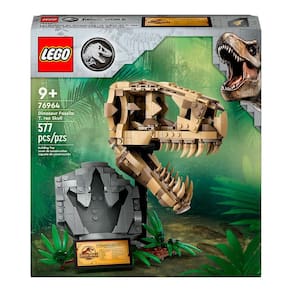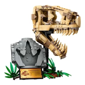 Inspire crianças fãs de dinossauros ou jovens arqueólogos maiores de 9 anos com este brinquedo de dinossauro LEGO Jurassic World Fósseis de Dinossauros: Crânio de T. rex (76964) para crianças. O primeiro conjunto Jurassic World feito para exibir contém um crânio com uma mandíbula que abre, um suporte com uma placa de informações, uma peça de âmbar escondida atrás do modelo e uma pegada fossilizada.