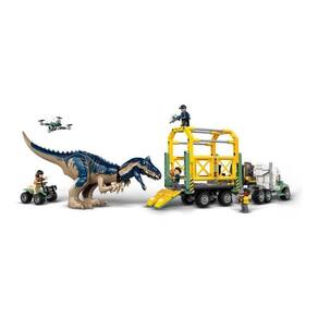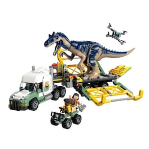Novas e inesperadas aventuras com animais estão reservadas para fãs a partir dos 8 anos com este modelo dosaur missions: allosaurus transport truck repleto de possibilidades de dramatização. Este conjunto de brinquedos de dinossauro lego Jurassic World é um divertido presente para festas infantis. Ele permite que as crianças contem histórias de ação ilimitadas usando a figura de brinquedo moldada do Allosaurus com pernas móveis, cabeça e boca que abre, além de minifiguras de Darius, Kenji, Yaz e guarda. Há um semi-caminhão com teto e capô que abrem, uma cabine para 3 minifiguras com uma cama, um trailer-gaiola com suportes frontais e uma rampa traseira que abre, uma gaiola que abre com um acionamento de alavanca, um quadriciclo e um drone, além de muitos de elementos iniciais da história.