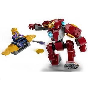 Inspirado no filme Vingadores: Guerra Infinita da Marvel Studios, este conjunto colocar o Super-Herói Homem de Ferro e seu robô contra o super-vilão Thanos e sua aeronave. O robô Caça-Hulk é totalmente posicionável e inclui um assento para a minifigura do Homem de Ferro. A aeronave tem um disparador de discos e um assento para a minifigura do Thanos. Dentro da caixa, cada embalagem de peças conta com um modelo completo e um personagem que as crianças podem montar para brincar imediatamente. Uma história ilustrada colorida serve como um guia para construir e brincar, e as 2 Peças Iniciais de pernas de robô simplificam a construção. Para ainda mais diversão digital, os construtores podem ampliar e girar conjuntos em 3D e acompanhar o progresso deles usando o divertido e intuitivo aplicativo LEGO Builder.
