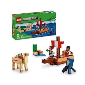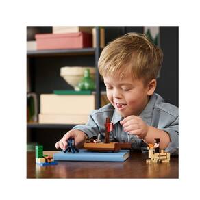É um conjunto de aventura Lego Minecraft com figuras de piratas que é divertido sozinho ou combinado com outros conjuntos vendidos separadamente