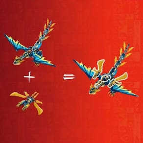 Recrie o confronto épico da série de TV NINJAGO Dragons Rising com o conjunto Ninjago Elemental Dragon vs The Empress Mech Dragon 71796. Este impressionante conjunto de construção apresenta o temível dragão Jiro, que pode ser atualizado adicionando asas de lâmina dourada e atiradores de espigas de um veículo voador para enfrentar o mecanismo dourado articulável da Imperatriz, que empunha uma grande espada.