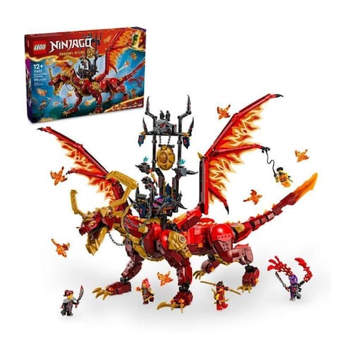 Crianças a partir de 12 anos recriam aventuras aéreas da 2 temporada do programa de TV ninjago dragons rising com este incrível brinquedo de aventura source dragon of Motion. Este é o maior brinquedo de dragão lego de todos os tempos e tem pernas, cauda, quadris, mandíbula, cabeça, pescoço e asas grandes ajustáveis. Ele vem com um trono de sela nas costas e 6 dragões espirituais menores.