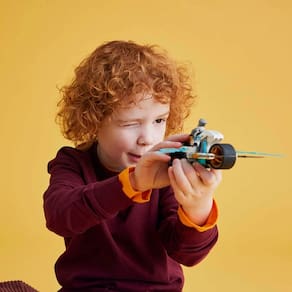 Este impressionante brinquedo de aventura vem com uma minifigura de Zane para andar na garupa da moto.