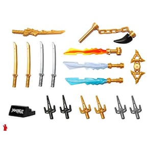 LEGO NinjaGo Weapons Pack com Suporte de Exibição - Para Lloyd, Cole, Kai, Jay, Zane, Nya e qualquer outra Minifigure