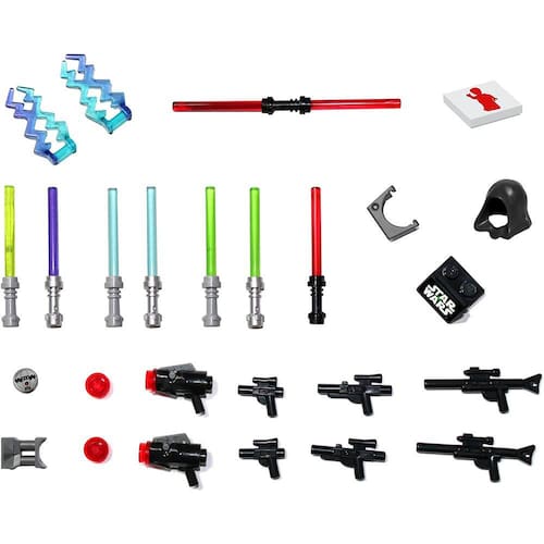 LEGO Star Wars Accessory and Weapons Pack - 8 sabres de luz, 8 blasters, 1 suporte de exibição e mais