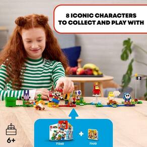 Curso Inicial necessário para o jogo interativo Um dos conjuntos do Curso Inicial, apresentando as figuras LEGO Mario (no conjunto 71360), LEGO Luigi (71387) ou LEGO Peach (71403), é necessário para jogar.