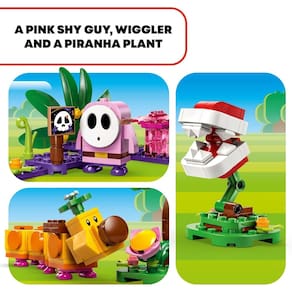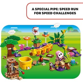 Adicione as figuras LEGO® Mario™, LEGO® Luigi™ ou LEGO® Peach™ (dos sets 71439, 71440 ou 71441 – vendidos separadamente) para brincadeiras interativas. Ganhe moedas digitais ao andar na Lagartola, derrubar o Masquito Rosa, atravessar o pântano venenoso na jangada e muito mais.