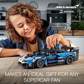 Apresenta o carro de corrida McLaren Senna, uma réplica autêntica do ícone das pistas e versão LEGO Technic do supercarro deslumbrante da McLaren.