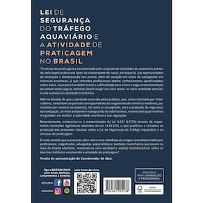 >Sobre a obra Lei de Segurança do Tráfego Aquaviário e a Atividade de Praticagem no Brasil - 1ª Ed - 2025 (...) O serviço de praticagem é caracterizado pelo conjunto de atividades de assessoria prestado pelo expert prático em favor do comandante de navio, em especial, nas oportunidades de atracação e desatracação nos portos, além de atuação em áreas de navegações em hidrovias brasileiras, já que referidos profissionais detêm conhecimentos aprofundados sobre áreas, cujas peculiaridades locais e a dificuldade para a livre e segura movimentação de embarcações (águas restritas) fazem surgir um risco maior ao meio ambiente sensível, à vida humana ou atividade econômica. Não há dúvidas de que a atividade exercida pelos práticos, que, como noticiado por historiadores, remontam ao período correspondente ao surgimento do comércio marítimo, justamente por mostrar-se essencial, tal como já consignado, para a proteção da segurança da navegação, ao meio ambiente e salvaguarda da vida humana, motivo pelo qual resolveu o legislador em atribuir à autoridade marítima a sua regulação Recentemente, evidenciou-se a modernização da Lei 9.537 (LESTA) através de importantes inovações legislativas advindas da 8, o que justificou a iniciativa na produção dos presentes estudos sobre a Lei de Segurança do Tráfego Aquaviário e os serviços de praticagem. É neste sentido que a presente obra reúne uma coletânea de artigos consubstanciados por professores, magistrados, advogados, especialistas e, também, marinheiros que atuam na área do direito marítimo, revelando-se uma verdadeira análise multidisciplinar sobre os diversos institutos envolvendo a atividade de praticagem”. Trecho de apresentação do coordenador da obra.