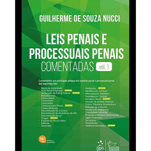 Edição atualizada com as alterações legislativas ocorridas ao longo do último ano. Traz Leis Penais e Processuais Penais Especiais selecionadas, com comentários minuciosos aos tipos penais incriminadores e às normas de processo. A doutrina é a mais variada possível, ao lado de críticas e sugestões do autor para o aprimoramento da lei. A jurisprudência selecionada busca contemplar todos os tribunais brasileiros. Destaca-se a inter-relação entre as Leis Penais e Processuais Penais Especiais com as normas gerais existentes no CP e no CPP, integrando, na medida do possível, o que está esparso no sistema jurídico-penal. Em todas as suas obras, Guilherme de Souza Nucci busca incessantemente o ideal de inovação. A cada trabalho, procura aprimorar os estudos das ciências criminais, acompanhando sua evolução e progresso, com sólido conteúdo acadêmico, resultando em uma produção jurídico-literária que ultrapassa 40 títulos. Marca: Não Informado