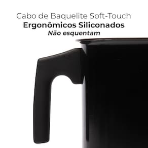 A Leitura não gruda e é extremamente fácil de limpar, além disso, o cabo é revestido com silicone que não esquenta, é mais confortável ao manusear e traz muito mais segurança durante o preparo de suas refeições.