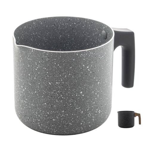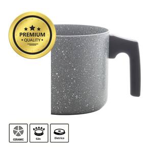 Material: Alumínio com revestimento cerâmico Cabo: Revestido de silicone Capacidade: 1,1 L Dimensões: Altura: 12cm x Diâmetro 12cm Não serve para fogão de indução.