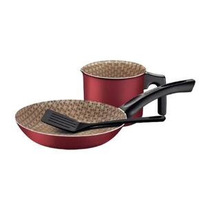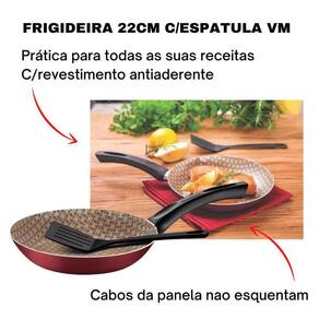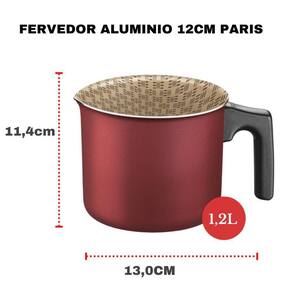 Fervedor Leiteira Tramontina Paris 14cm e Frigideira Antiaderente Tramontina 22cm+Espátula A Linha Paris é perfeita para quem gosta de preparar muitas delícias à família e receber amigos. Além de panelas com diferentes capacidades, dispõe de frigideiras, fervedores, cuscuzeiras, conjunto banho-maria, panela wok, jogos para fondue e outros. Em alumínio revestido com antiaderente Starflon T1 interno e externo, proporcionam cozimento uniforme e são fáceis de lavar, pois os alimentos não grudam. A decoração interna das peças representa a delicadeza e dedicação de quem cozinha. E os cabos, alças e pegadores são antitérmicos permitindo o manuseio com segurança. Podem ser utilizadas em fogão a gás, elétrico e vitrocerâmico resistência elétrica e levadas à máquina de lavar louças..Especificações Técnicas:- Peso: 0,3700 kg; - Dimensões Produto Compr. X Larg. X Alt. : 405x 223x 65 mm; - Diâmetro: 22,0 cm; - Espessura: 1,8 mm; - Alumínio com revestimento interno e externo em antiaderente Starflon T1; - Cabo de baquelite antitérmico e pegador de nylon; - Espátula de nylon.Conteúdo da Embalagem- 01 Frigideira Antiaderente em Alumínio Tramontina Paris 22 cm Vermelha - 01 Espátula de nylon Tramontina.- 01 Fervedor 14cm ParisUSO SEGURO E ADEQUADO:Ao utilizar utensilios quentes tenha cuidado redobrado. Se necessário, utilize proteção para as mãos e mantenha fora do alcance de crianças. Para sua segurança, ao utilizar utensílios com cabos, mantenha os mesmos sempre voltados para o centro do fogão. Ao utilizar seu utensílio em fogões com grade, mantenha a peça centralizada e alinhe o cabo com a grade, para reduzir o risco de queda. Para descarte dos produtos e embalagens siga as orientações de reciclagem vigentes. Fotos meramente ilustrativas;