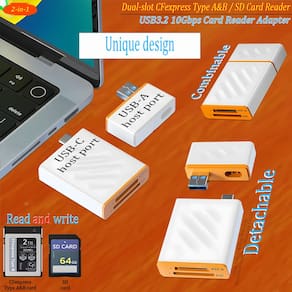 Leitor de cartão CFexpress Type A&B/SD de dois slots (USB3.2 10 Gbps)