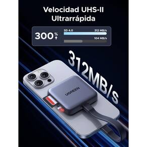 Leitor de cartão sd magnético ugreen 4.0 uhs ii usb c com suporte pd 100w 312 mb/s adaptador de cartão tf de alumínio compatível com//16,/plus,/pro,/max,/15,/macbook/air,/,/galaxy,/s25. Velocidade ultra-alta 312 mb/s o leitor de cartão magnético usb c sd 4.0 uhs-ii atinge velocidades de transferência de dados de até 312 mb/s entre cartões sd/micro sd e seu computador/smartphone/tablet com porta usb c. Transmissão e potência não é necessário escolher entre carregamento rápido e transferência, o leitor micro sd usb-c expande a interface usb c pd para evitar ocupar a interface do celular durante a transferência de dados. Suporta transferência e carregamento simultâneos com uma potência de até 100w. Fixação magnética este adaptador sd usb c adota um design magnético, adere facilmente ao dispositivo, permitindo que você leia o cartão com mais eficiência e praticidade, sem se preocupar com a queda do leitor, atendendo às suas necessidades de transmissão a qualquer hora e em qualquer lugar. Observação: a função magnética deste produto serve apenas para adesão e fixação, não possui a função de carregamento magnético. Acesso simultâneo a 2 cartões este leitor de cartão sd contém um slot sd 4.0 e um slot tf 4.0. Ele pode ler e gravar dois cartões simultaneamente, economizando tempo e garantindo uma transmissão eficiente. Suporta cartões sd, micro sd tf , uhs, sdxc, sdhc, sduc, micro sdxc e micro sdhc de até 2 tb. Durável este leitor de cartão sd 4.0 para pc/android é feito de uma caixa de alumínio resistente para uma aparência mais refinada e é mais durável do que os leitores de cartão de caixa de plástico comuns. Suporte máximo de cartão 2 tb -marca ugreen -cor cinza espacial -modelo 65095 pd 100w 312 mb/s 4.0 uhs ii 6,1 x 6,1 x 1,24 cm; 80g Homologação Anatel: 028752413520