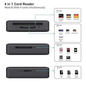 Leitor de cartão de memória, adaptador de leitor de cartão BENFEI 4 em 1 USB C para SD Micro SD MS CF compatível com iPhone 15 Pro/Max, MacBook Pro/Air 2023, iPad Pro, iMac, S23, XPS 17, Surface Book 3 e mais - DESIGN INTEGRADO - O leitor de cartão BENFEI USB-C/USB 3.0 com design integrado oferece acesso de alta velocidade de dados a 4 tipos de cartão diferentes, o Micro SD (Secure Digital), Micro SD (Secure Digital) (TF), MS (Memory Stick) e CF (Compact Flash). E com o design USB-C/USB 3.0 2 em 1, o leitor de cartão BENFEI pode funcionar com computador ou laptop pelo slot USB 3.0/2.0 ou pelo slot USB Type-C (Thunderbolt 3) mais recente. Uma solução de leitor de cartão universal. - DESEMPENHO INCRÍVEL - Com a mais recente porta USB Type-C ou USB 3.0, aproveite ao máximo as taxas de transferência no modo UHS-I de até 160 MB/seg, compatível com versões anteriores do USB 2.0/1.1. Navegue e veja fotos instantaneamente em seus smartphones/laptops USB-C/USB3.0. (NOTA: A velocidade final dos dados é decidida pelo tipo de cartão e slot USB). - ESTABILIDADE SUPERIOR - O chip IC avançado integrado lida com o sinal de transferência de dados de alta velocidade USB-C/USB, permite a transferência de filmes em HD em apenas alguns segundos. ? É um leitor de cartão simultâneo e pode ler 4 cartões ao mesmo tempo. - AMPLA COMPATIBILIDADE — Compatível com MacBook Pro 2019/2018/2017/2016, MacBook 2017/2016/2015, iPad Pro 2018, Surface Book 2, Samsung Galaxy S10/S9/S8/Note 8/Note 9, HTC U11/U12, Pixelbook, Dell XPS 15/XPS 13, Galaxy Book e muitos outros dispositivos USB-C. NOTA: Os cartões SDXC (capacidade de 64 GB ou maior) usam um formato de arquivo especial “exFAT”, que não é suportado no Windows XP, no Windows Vista antes do SP1 e no Mac OS X antes da 10.6.6). - GARANTIA DE 18 MESES - A garantia incondicional exclusiva de 18 meses da Benfei garante a satisfação de sua compra por muito tempo; atendimento ao cliente amigável e fácil de alcançar para resolver seus problemas em tempo hábil