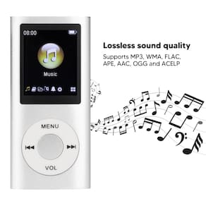 - Qualidade de som sem perdas: o reprodutor de música MP3 portátil tem qualidade de som sem perdas e suporta MP3, WMA, FLAC, APE, AAC, OGG e ACELP.