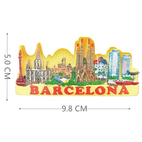 Material: Resina Tamanho: 9,8 x 5 m Peso: 50 gDesign icônico de Barcelona: apresenta os principais pontos turísticos de Barcelona, incluindo a Sagrada Família e o horizonte da cidade, capturando a essência da cidade em um design colorido e detalhado de resina 3D. Construção durável em resina: feita de resina de alta qualidade, garantindo durabilidade duradoura e retenção de cores vibrantes nos próximos anos. Perfeito para decoração: ideal para geladeiras, armários, quadros brancos ou qualquer superfície metálica. Um complemento perfeito para cozinhas, escritórios ou decoração de casa, mostrando seu amor por Barcelona. Compacto e leve: com dimensões de 9,8 x 5 cm e pesando apenas 50 g, esse ímã é fácil de colocar em qualquer lugar sem ocupar muito espaço. Ótima lembrança: uma linda lembrança de Barcelona, tornando-a um presente perfeito para viajantes ou colecionadores que apreciam ímãs urbanos únicos e artísticos.