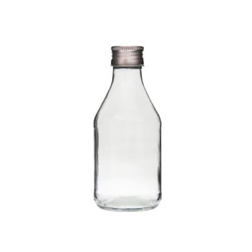 A combinação do vidro transparente com a tampa metálica prata confere um ar sofisticado e moderno, perfeito para diversas ocasiões.