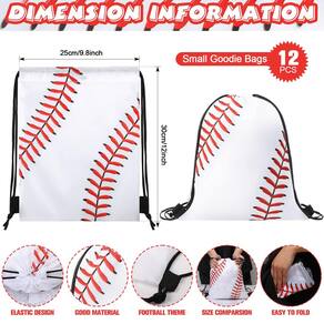 Funcionalidades Aplicável a várias ocasiões: Estes acessórios de beisebol são leves, bonitos e fáceis de transportar. Pode ser aplicado como presentes requintados, adequados para festas temáticas de beisebol, festas de aniversário, jogos de beisebol escolares, festas de sala de aula ou outras festas temáticas esportivas, tornando sua vida mais colorida. Enérgico e atraente: Estes presentes de time de beisebol são presentes delicados para jogadores de beisebol, entusiastas de esportes e muito mais, e eles ficarão encantados em receber presentes tão significativos quando os receberem. Especificações: Material: Chaveiro: PVC e botão de metal Pulseira: corda de cera e PVC Sotball: espuma Bolsa com cordão: poliéster Cor: como mostrado nas imagens Tamanho: como mostrado nas imagens Conteúdo da embalagem: 12 x mochilas com cordão de beisebol 12 x mini bolas de softbol de PVC. 12 chaveiros de beisebol. 12 x pulseiras trançadas de linha de cera de beisebol Aviso: Medição manual, considere pequenos erros no tamanho. A cor pode existir uma ligeira diferença devido a diferentes ecrãs. Peças pequenas e pontiagudas contidas, mantenha longe de crianças pequenas. - Conteúdo da embalagem: o conjunto de lembrancinhas de festa de beisebol inclui 12 mochilas de cordão de beisebol, 12 mini bolas de softball, 12 chaveiros de beisebol, 12 pulseiras trançadas de fio de cera de beisebol; rico em quantidade e estilo, o suficiente para atender às suas necessidades de uso diário e também pode ser compartilhado com membros do seu time e mostrar o estilo do time - Materiais de qualidade: os chaveiros de beisebol são feitos de PVC de qualidade e botão de metal, a pulseira de beisebol é feita de corda de cera e PVC, o mini beisebol é feito de esponja de espuma e os sacos de cordão de beisebol são feitos de tecidos de poliéster; esses suprimentos de festa de beisebol podem atendê-lo por um longo tempo - Design de tema de beisebol elegante: nossos suprimentos de tema de beisebol são projetados com padrão de beisebol vívido, cheio de vitalidade e energia, adequado para várias ocasiões esportivas; você pode usá-los orgulhosamente durante os jogos para exibir seu espírito de equipe e suporte - Decoração requintada: os chaveiros de beisebol podem ser pendurados em bolsas escolares ou carteiras, trazendo uma sensação animada e inspiradora aos seus pertences pessoais; a bolsa de cordão de beisebol pode conter cadernos, garrafas de água, celular e outros itens do dia; A pulseira de beisebol pode ser aplicada como decoração para mostrar o espírito de equipe usando-a; A mini beisebol é macia ao toque e pode ser usada para aliviar o desconforto e relaxar - Amplas aplicações: estes presentes de beisebol para equipe têm cores brilhantes e padrões vibrantes, mostrando sua juventude e vitalidade; eles podem ser aplicados como enchimentos de sacolas de presente, enchimentos de cestas, presentes para colegas de equipe, recompensas de sala de aula e muito mais. ; Também pode ser aplicado como presentes requintados para jogadores de beisebol, entusiastas de esportes, meninos e meninas