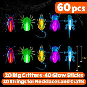 - BRINQUEDOS FALSOS PARA INSETOS QUE BRILHAM NO ESCURO: este pacote de 60 insetos e insetos de plástico iluminados para crianças inclui (20) criaturas falsas, desde lagartos falsos, aranhas falsas, besouros falsos e moscas falsas até ratos falsos. Também inclui (40) minisbastões luminosos e (20) colares extras ou cordões pendurados para decoração