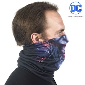 - COBERTURA FACIAL JOKER: lenço de pescoço multiuso de poliéster preto DC Comics The Joker com um design visual impressionante de boca de The Joker