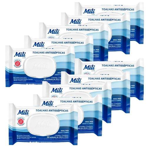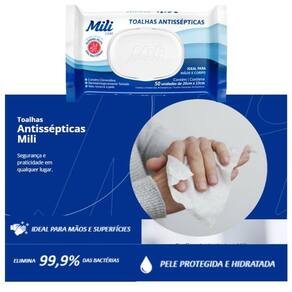 Toalha Umedecida Mili Antisséptica 50 unidades
