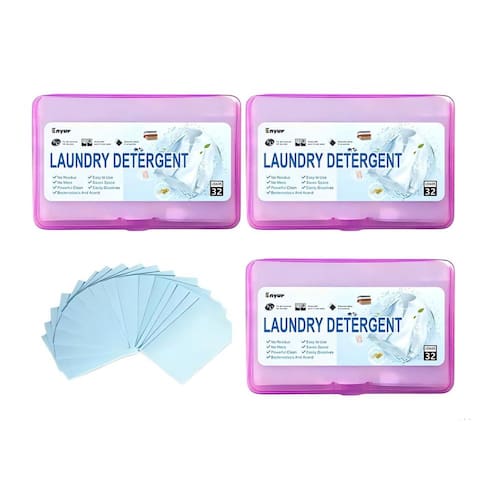 👍 Sem medição, sem bagunça👍Vamos encarar isso. O detergente de roupa tradicional é bagunçado e desperdiça muito espaço. Medir detergente quase sempre resulta em derramamento. Com tiras ecológicas Enyur, 1 tira equivale a 1 carga. Sem medição e nada a derramar.