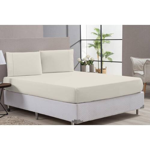 Contém: 01 lençol com elástico para colchão de: 1,88m x 1,38m x 0,30cm de altura. 02 fronhas 70cm x 50cm.