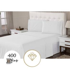 Lençol 4 Peças Casal 400 Fios Toque Suave Ponto Palito Casa Dona - Branco