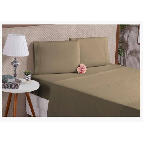 Lençol 4 peças percal casal king ponto palito cáqui macio Jogo de lençol casal king 4 peças