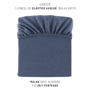 Lençol Avulso Solteiro Kacyumara Malha 100% Algodão Azul