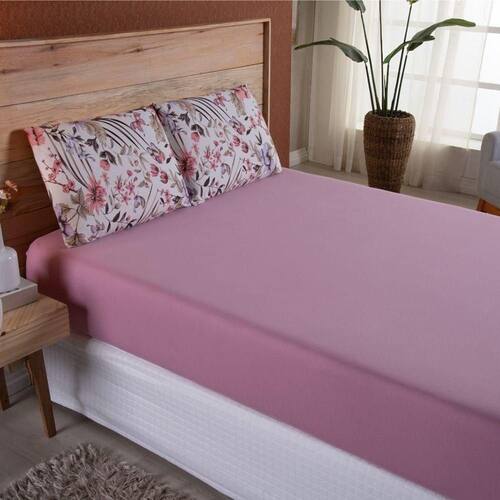 Lençol Casal Malha Fio Penteado Algodão 3 Peças - Rosê