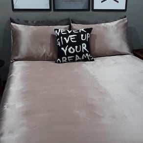 Lençol Com Elástico Casal Super King 4 Un Cetim Cobre LightJogo de lençol para clientes que além do conforto, não abre mão de exclusividade e bom gosto também ao se deitar. Com designer rico, despojado e jovial, os jogos de lençóis da marca garantem um clima atemporal para o seu quarto. Pensados e ousados para valorizar o seu decor.Disponível para cama: casal super kingKit composto por 4 peças.1 lençol com elástico para cama de 2,03cmx1,98cm para colchões de até 40cm de altura - lençol em cetim cor cobre light2 capas de travesseiros fronhas de 0,70cmx0,50cm - capas em cetim cor cobre light1 almofada exclusiva da grife de 45cm x 45cm com enchimento - preto com estampa em branco - estampa: never give up your dreams - nunca desista dos seu sonhos - almofada com enchimento. Detalhes:Lençol com elástico em toda extremidade barra para garantir um melhor ajuste no seu colchão sem ficar escapando e subindo ao se deitar. Elástico de alta qualidade para melhor pressão e facilidade ao vestir no seu colchão. Almofadas com zipper invisível para um acabamento delicado e de fácil lavagem. Acompanha enchimentoEm fibra siliconada revestida por polipropileno antialérgico. Capas de travesseiros não acompanham enchimento.Composição do produto:Lençol e capas de travesseiros em microfibra acetinada 180 fios. Tecido de toque macio e anti-pillingAlmofada em microfibra 180 fios fosco anti-pillingNossas peças são reconhecidas mundialmente pela qualidade e veracidade a qual vendemos pela internet. As almofadas a venda é composto por todas as peças da foto imagem, incluindo os enchimentos.Nossa estampa é 100% digital, podendo lavar por varias vezes sem perder a resolução da estampa e nem desbotar com o tempo.Atenção: o produto pode sofrer pequena alteração de tonalidade de cor dependendo da configuração do seu computador, tablet ou celular. Marca: Casa Da Fama