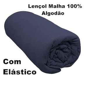 Lençol Com Elástico Queen Portallar Malha 100% Algodão Liso Linha Casa Azul Profundo