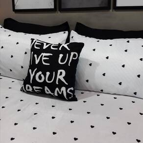 1 almofada exclusiva da grife de 45cm x 45cm com enchimento - preto com estampa em branco - estampa: never give up your dreams - nunca desista dos seu sonhos - almofada com enchimento.