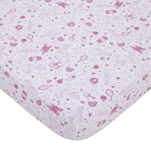 NoJo Disney Princess - Dare to Dream Castelo branco e rosa, corações e estrelas, lençol com elástico, rosa, branco