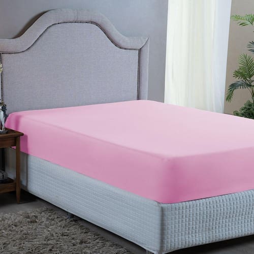 Lençol de Casal Avulso Com Elástico Premium Micro Percal 400 Fios Liso Rosa