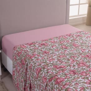 Lençol De Cima Avulso Luar Estampado Casal 01 Peça Malha 100% Algodão - Floral - Rosa
