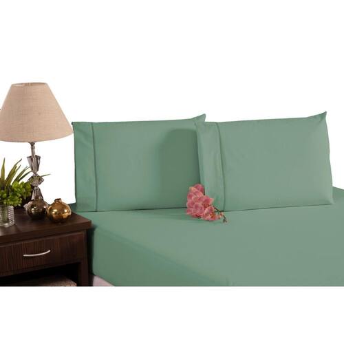 Lençol fronha algodão 3 peças verde ponto palito queen