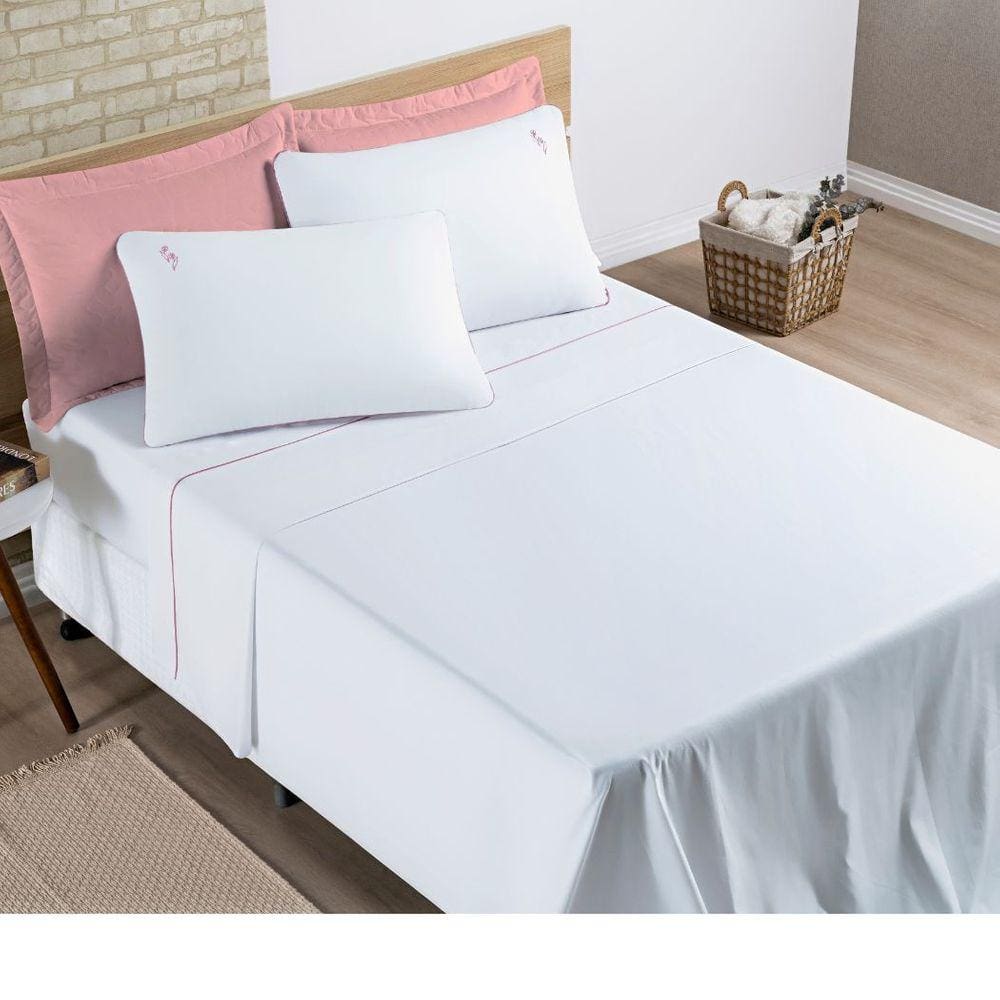 lencol jogo cama king 100 algodao 200 fios 4pc branco emozione vilela