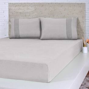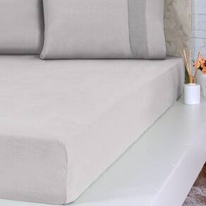 Lençol King Bella Cama Malha 100% Algodão 193x203x40cm Cinza -