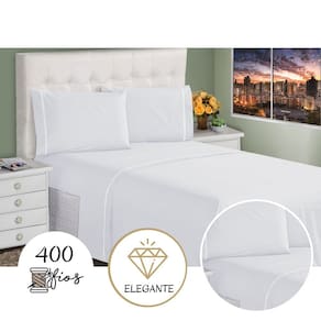 Lençol Queen 3 Peças 400 Fios Toque Macio Ponto Palito Casa Dona - Branco