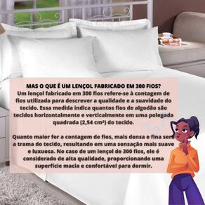 Um lençol fabricado em 300 fios refere-se à contagem de fios utilizada para descrever a qualidade e a suavidade do tecido. Essa medida indica quantos fios de algodão são tecidos horizontalmente e verticalmente em uma polegada quadrada 2,54 cm do tecido. Quanto maior for a contagem de fios, mais densa e fina será a trama do tecido, resultando em uma sensação mais suave e luxuosa. No caso de um lençol de 300 fios, ele é considerado de alta qualidade, proporcionando uma superfície macia e confortável para dormir.
