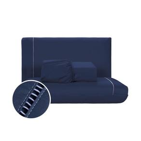 O ponto palito na cor azul marinho confere um toque especial ao jogo de lençol, adicionando um detalhe de elegância e sofisticação. A cor azul é clássica e versátil, combinando facilmente com outros itens de cama e deixando sua cama posta digna de revistas.