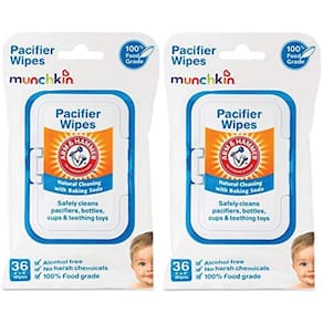 Nem todos os produtos de limpeza são criados iguais. Na verdade, muitos contêm produtos químicos agressivos que você não gostaria de chegar perto do seu precioso pequeno - muito menos os itens que entram na boca dela. Os lenços de chupeta Arm & HammerTM podem lhe dar a paz de espírito necessária, especialmente quando você está fora de casa com o bebê. Feito com ingredientes 100% de qualidade alimentar, este prático pacote de 36 toalhetes limpa chupetas, mamadeiras, mamilos, copos, utensílios e brinquedos de dentição usando o poder seguro e l do bicarto de sódio. Esses lenços umedecidos sem álcool medem 4 x 6 e são perfeitos para uso em qualquer lugar. Jogue-os em sua bolsa de fraldas para aqueles momentos inevitáveis em que você ou o bebê deixarão cair a última mamadeira limpa ou chupeta em um andar público sujo.