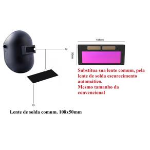 Lente De Solda Escurecimento Automático 108x50mm Din11 Produto: Lente De Solda Escurecimento Automático 108x50mm Din11 Descrição: Essa lente substitui as lentes de solda convencionais pretas com o mesmo tamanho 108x50mm , oferecendo maior clareza para o soldador. Ela escurece automaticamente, variando de 3 até 11 no momento de contato do eletrodo com o ferro, protegendo os olhos contra a intensidade da luz durante a solda. O carregamento é feito através de placas solares, garantindo praticidade no uso contínuo. Marca: Angry Bee