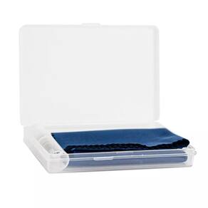O pano acompanha um estojo para armazenamento. Após o uso, basta dobrá-lo e guardá-lo no estojo para mantê-lo limpo e protegido.